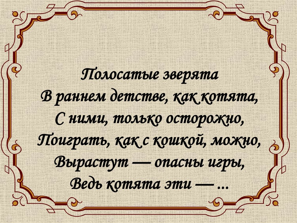 Полосатые зверятаВ раннем детстве, как котята,