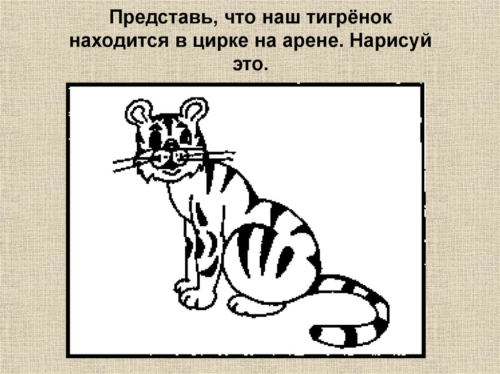 Представь, что наш тигрёнокнаходится в цирке на арене. Нарисуй