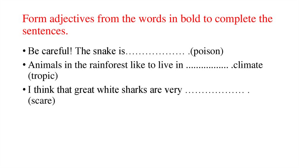 Form adjectives from the words in bold to complete thesentences.