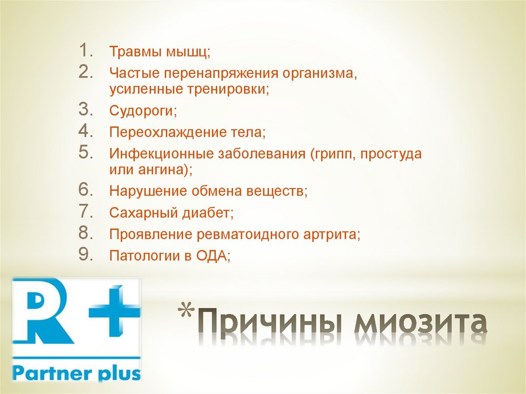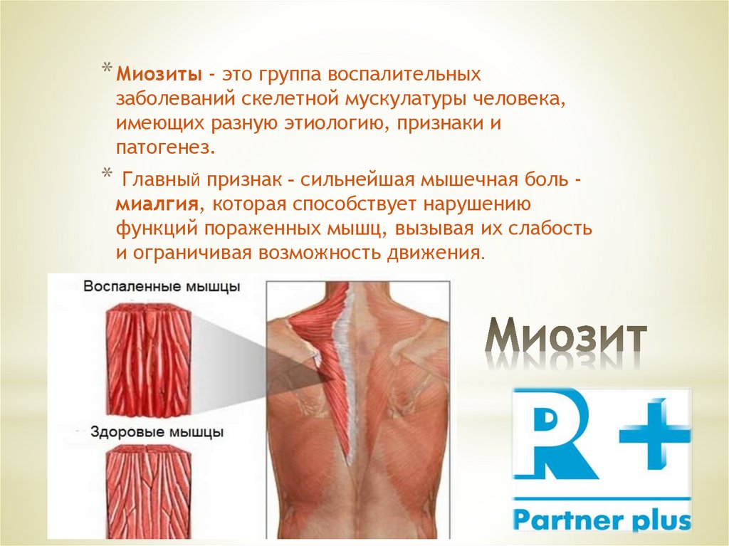 * Миозиты - это группа воспалительныхзаболеваний скелетной мускулатуры человека,