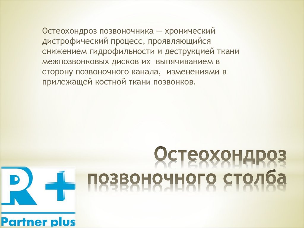 Остеохондроз позвоночника — хроническийдистрофический процесс, проявляющийся