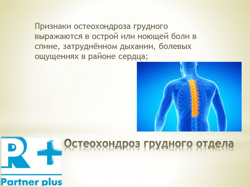 Признаки остеохондроза грудноговыражаются в острой или ноющей боли в