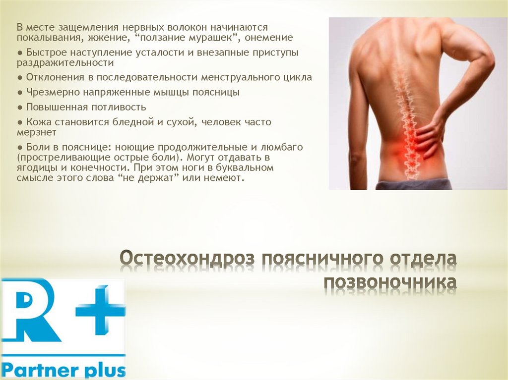 В месте защемления нервных волокон начинаютсяпокалывания, жжение, “ползание мурашек”, онемение