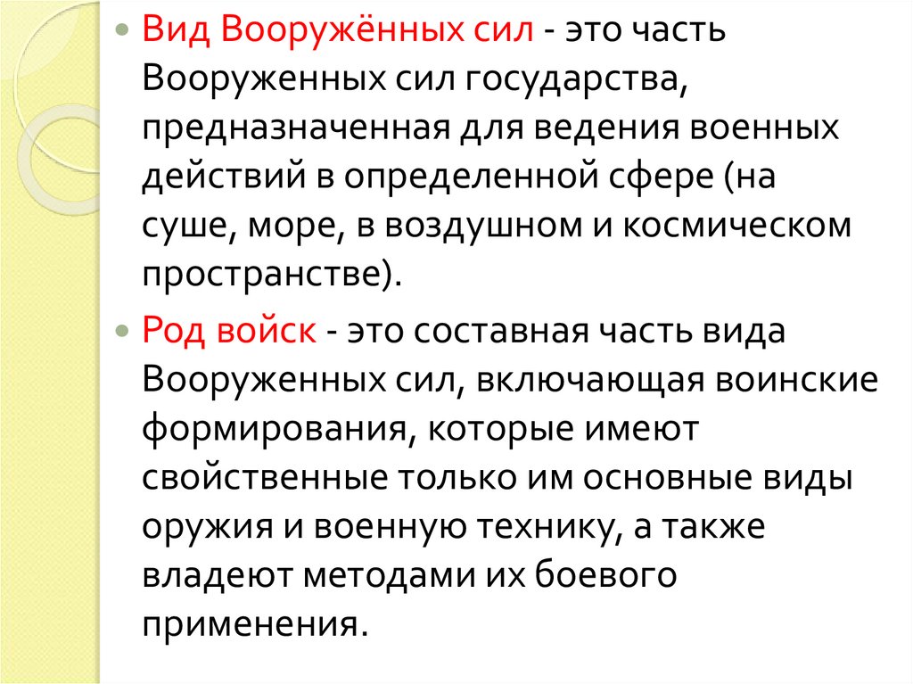 Род войск - это составная часть вида