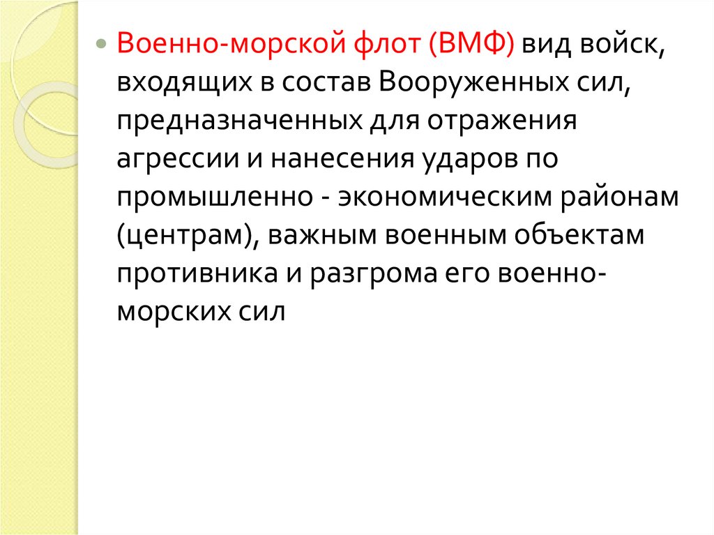 Военно-морской флот (ВМФ) вид войск,входящих в состав Вооруженных сил,