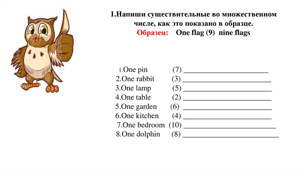 1.Напиши существительные во множественномчисле, как это показано в образце.