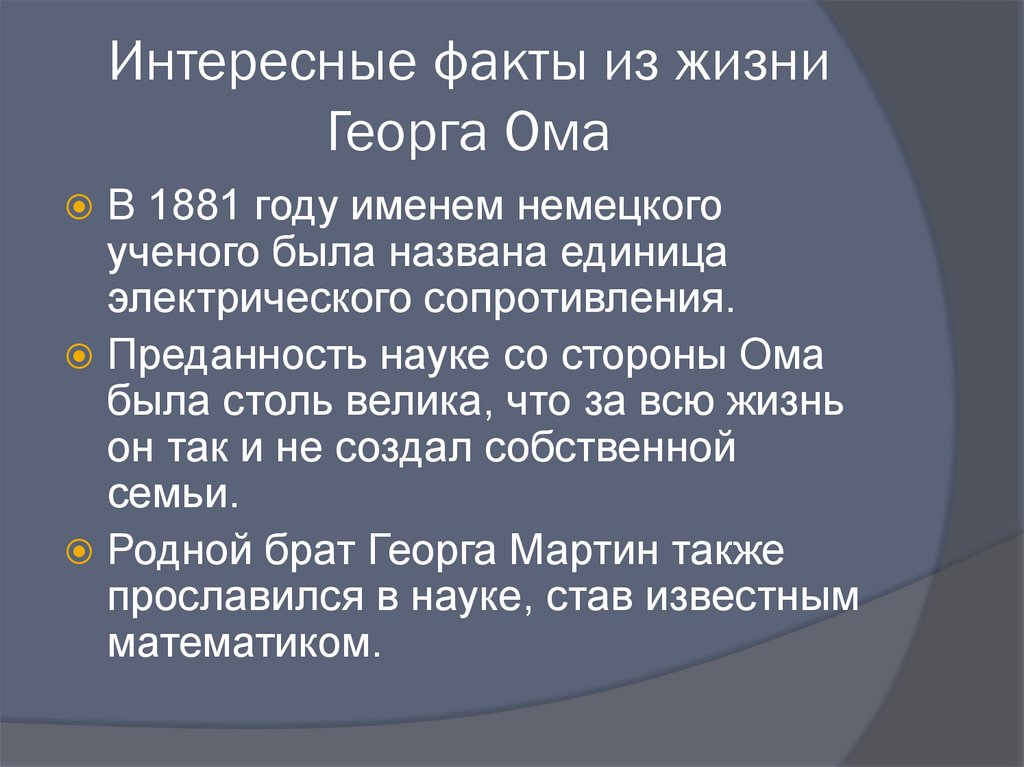 Интересные факты из жизниГеорга Ома