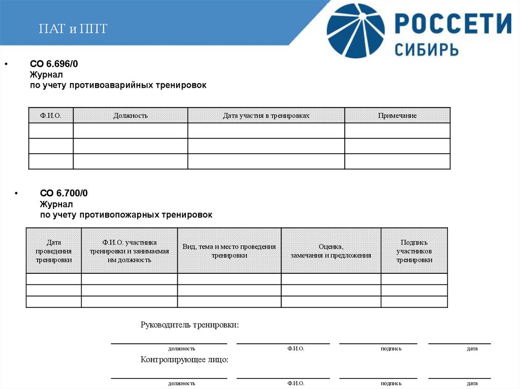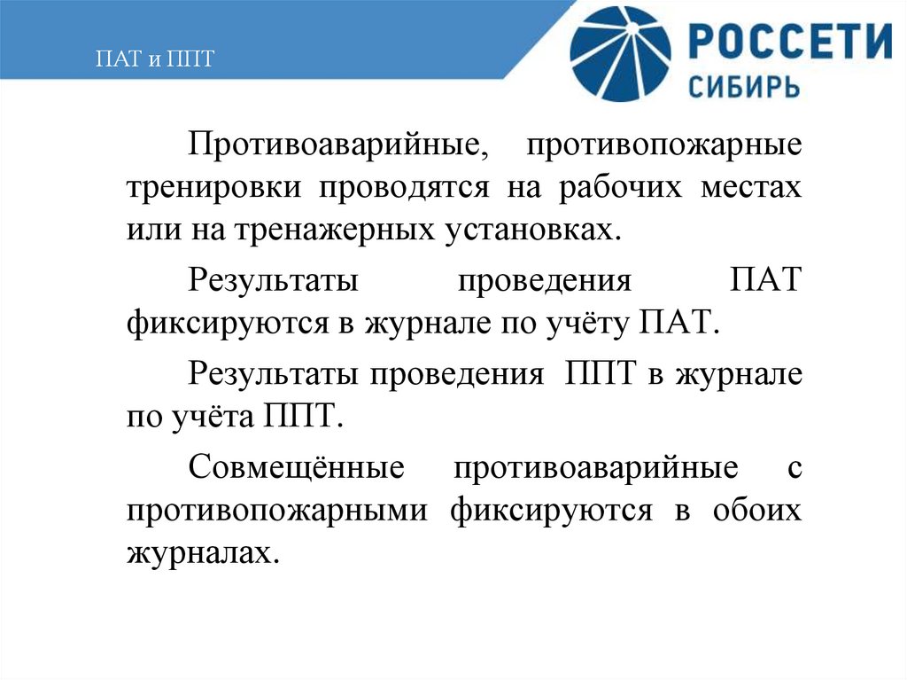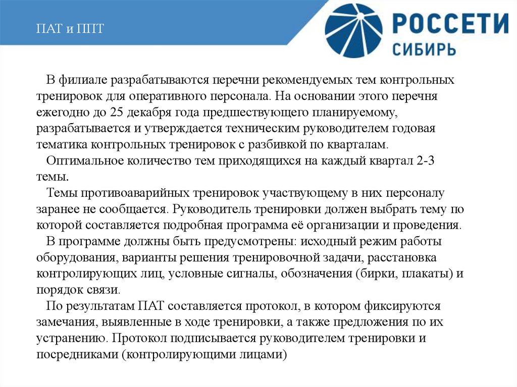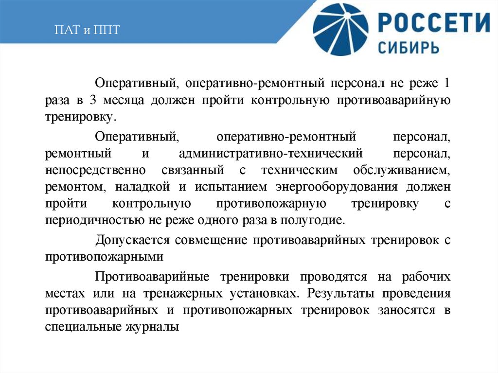 ПАТ и ППТОперативный, оперативно-ремонтный персонал не реже 1