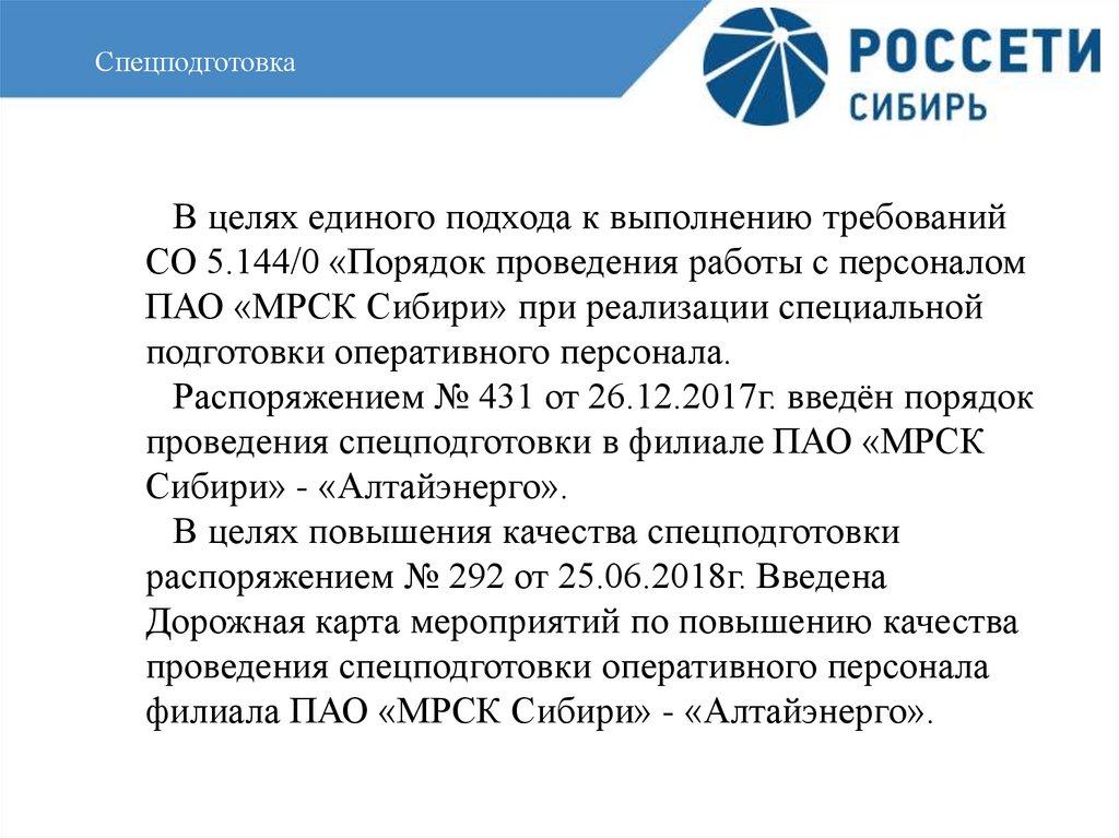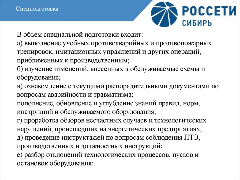СпецподготовкаВ целях единого подхода к выполнению требований