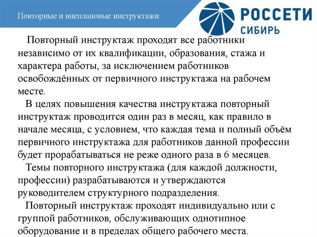 Повторные и внеплановые инструктажиПовторный инструктаж проходят все работники