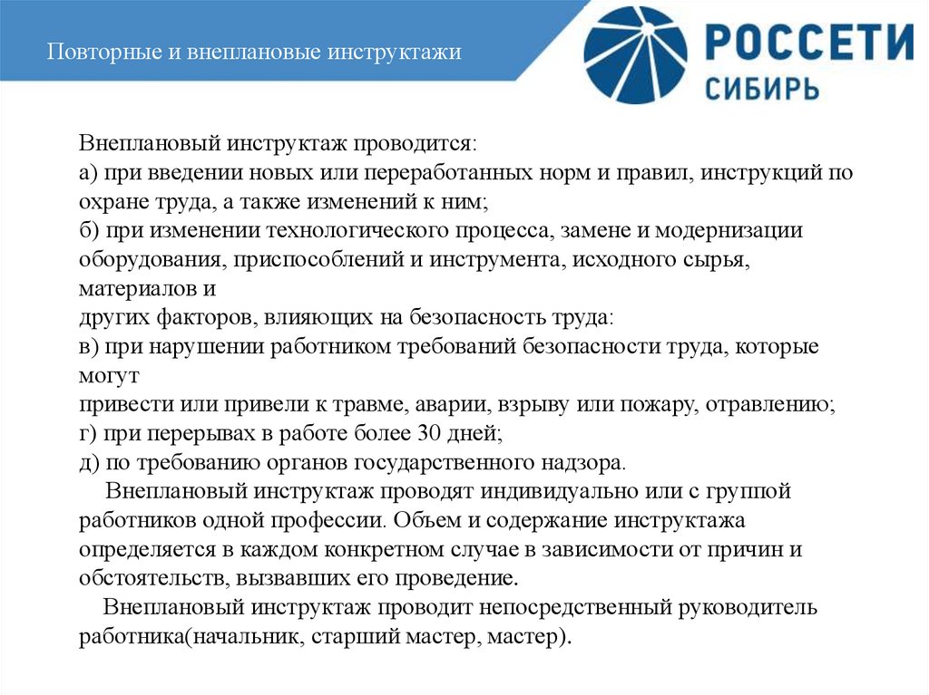 Повторные и внеплановые инструктажиВнеплановый инструктаж проводится: