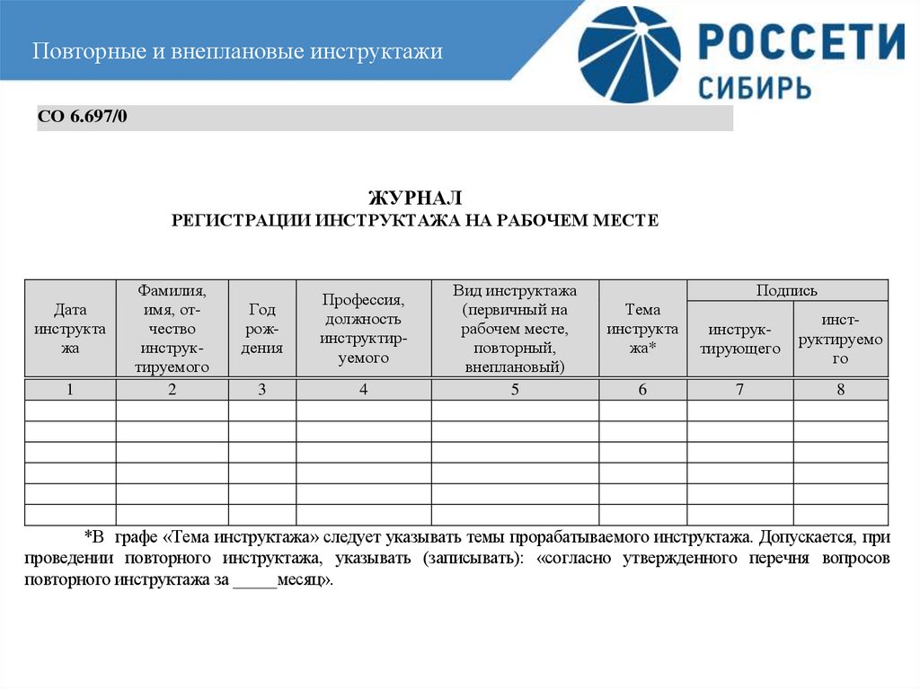 проведении повторного инструктажа, указывать (записывать): «согласно утвержденного перечня вопросов