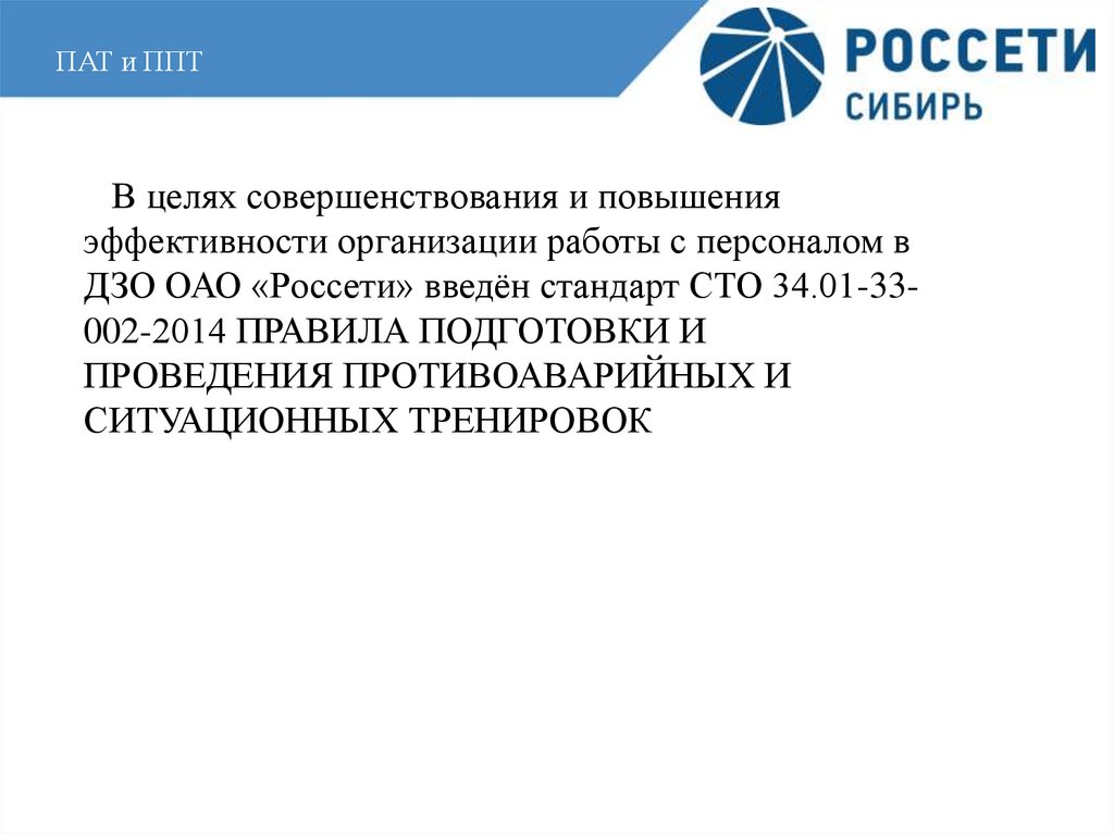 ДЗО ОАО «Россети» введён стандарт СТО 34.01-33002-2014 ПРАВИЛА ПОДГОТОВКИ И