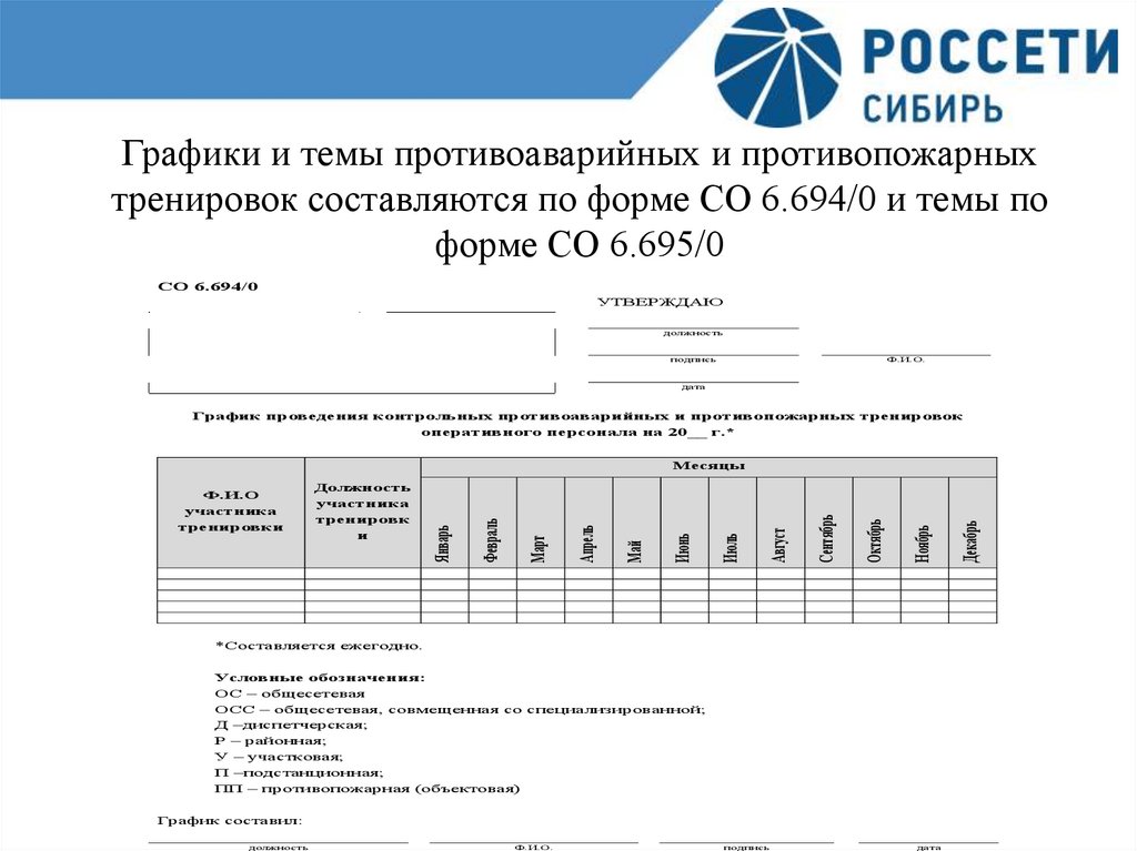 График проведения контрольных противоаварийных и противопожарных тренировок