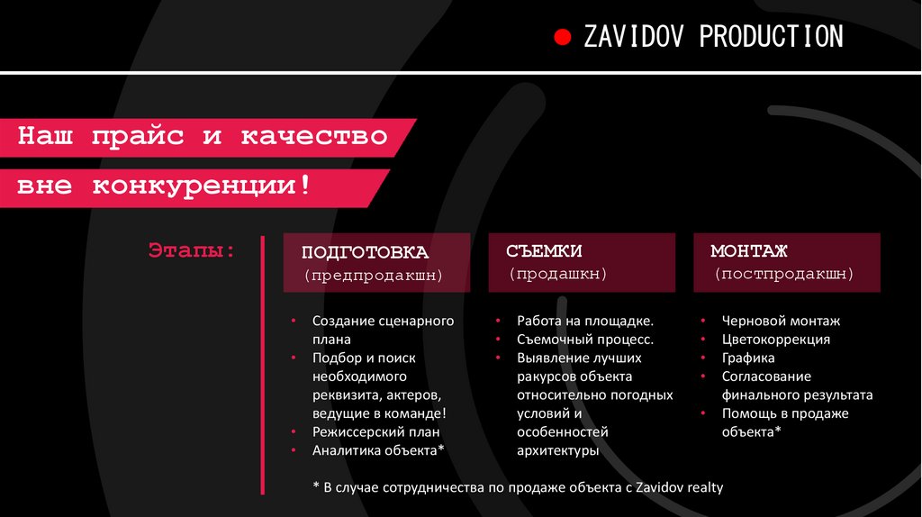 ZAVIDOV PRODUCTIONНаш прайс и качество