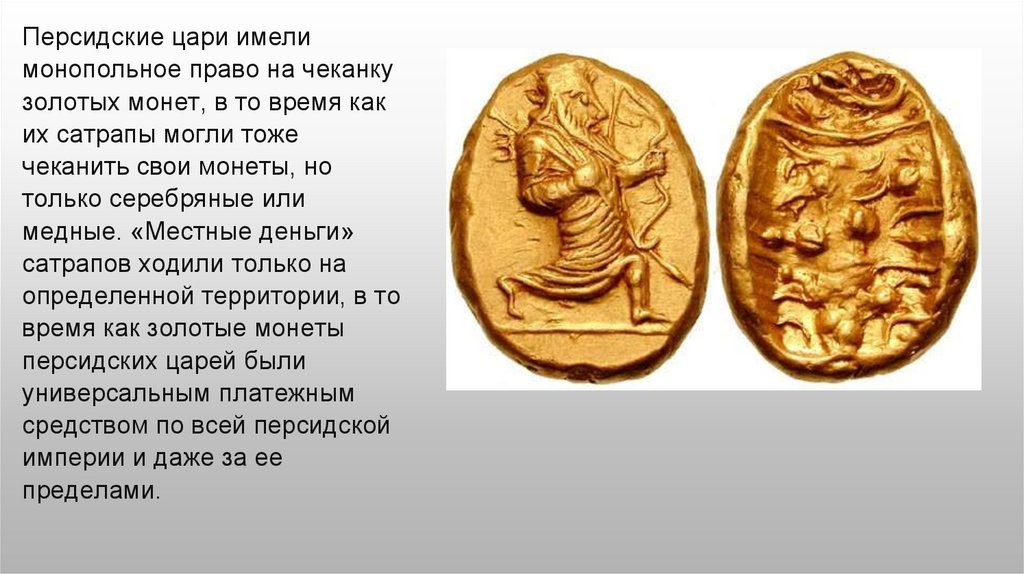 Персидские цари имелимонопольное право на чеканку