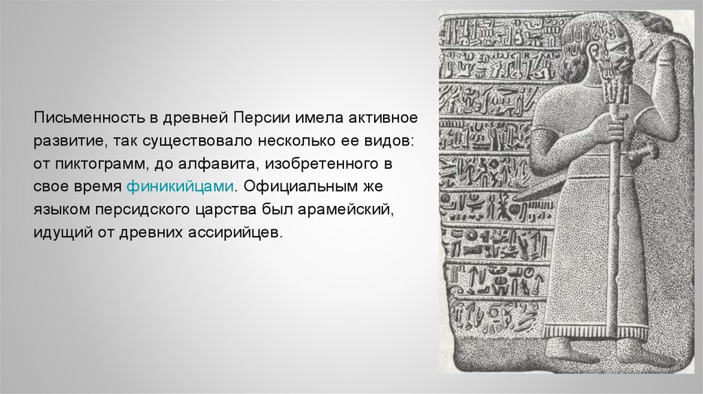 Письменность в древней Персии имела активноеразвитие, так существовало несколько ее видов: