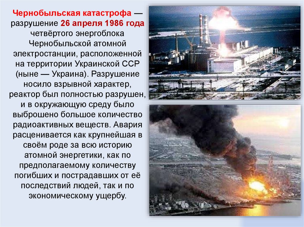 Чернобыльская катастрофа —разрушение 26 апреля 1986 года