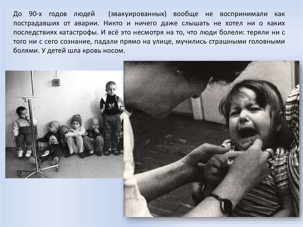 последствиях катастрофы. И всё это несмотря на то, что люди болели: теряли ни с