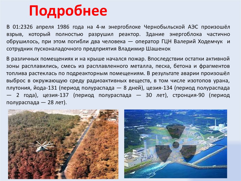 ПодробнееВ 01:2326 апреля 1986 года на 4-м энергоблоке Чернобыльской АЭС произошёл