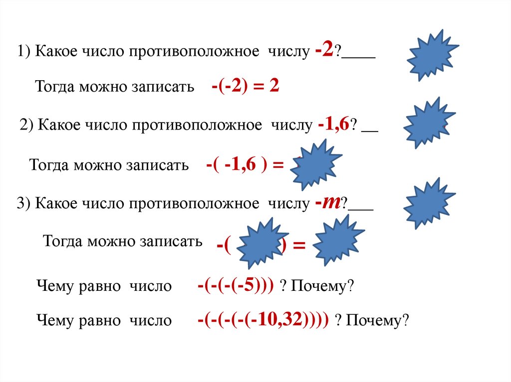 1) Какое число противоположное числу -2?____Тогда можно записать