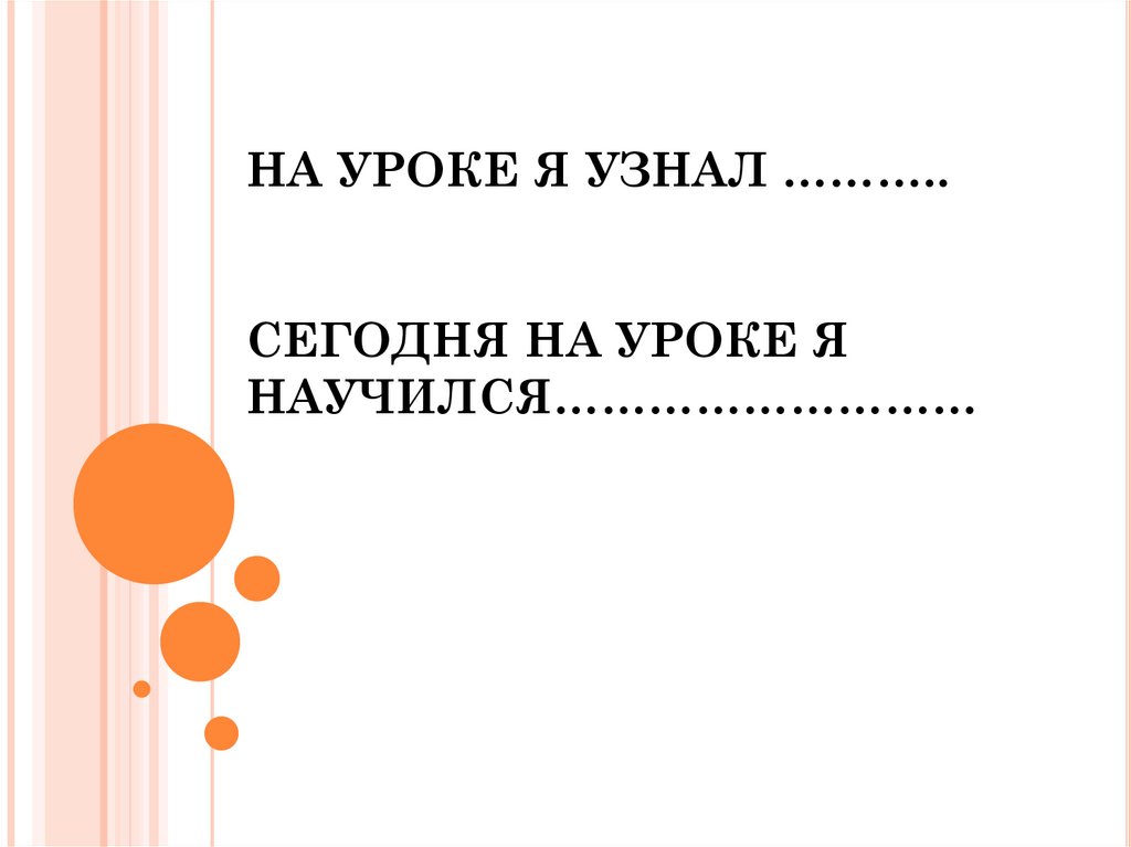 НА УРОКЕ Я УЗНАЛ ………..СЕГОДНЯ НА УРОКЕ Я