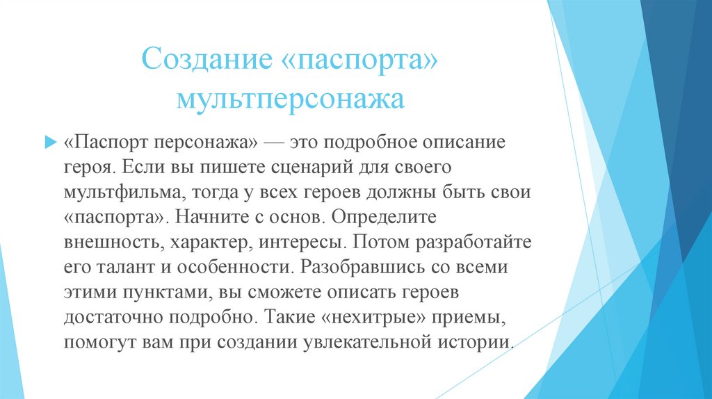 «Паспорт персонажа» — это подробное описание