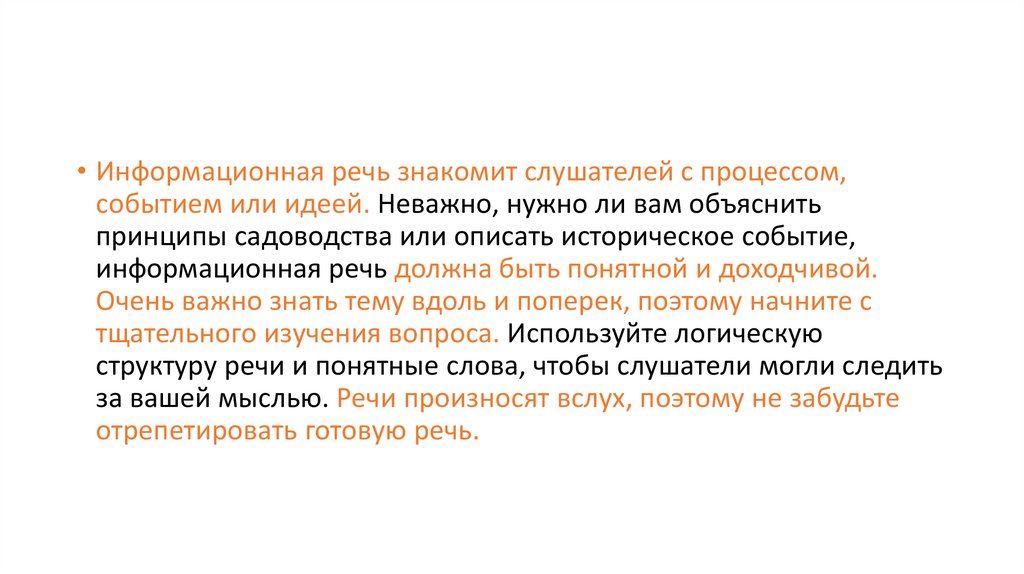 информационная речь должна быть понятной и доходчивой.