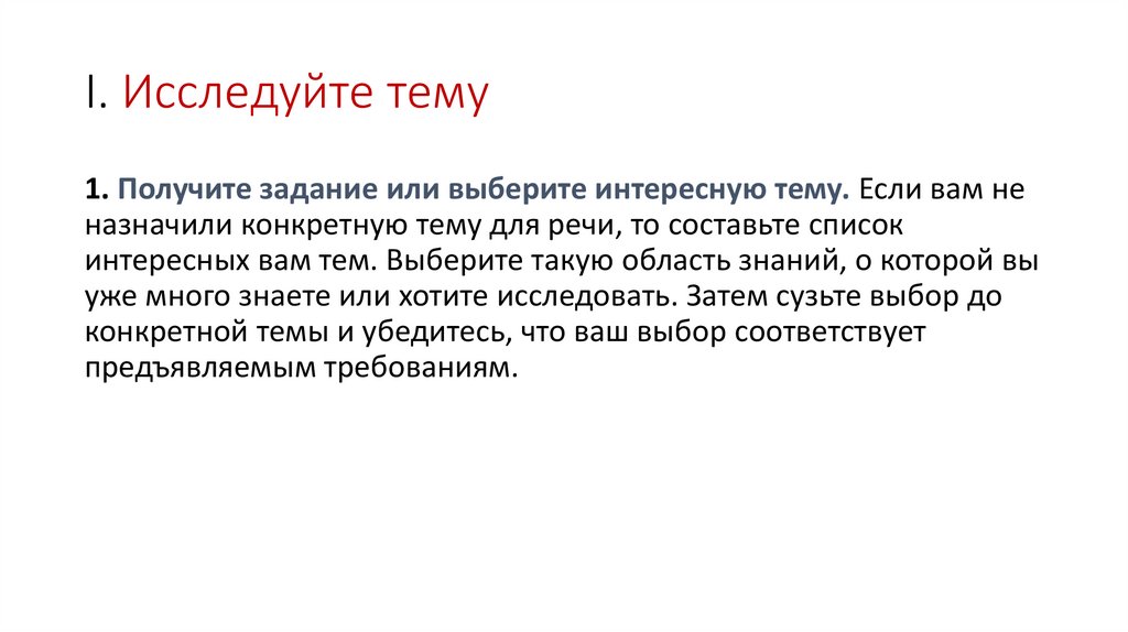 I. Исследуйте тему1. Получите задание или выберите интересную тему. Если вам не