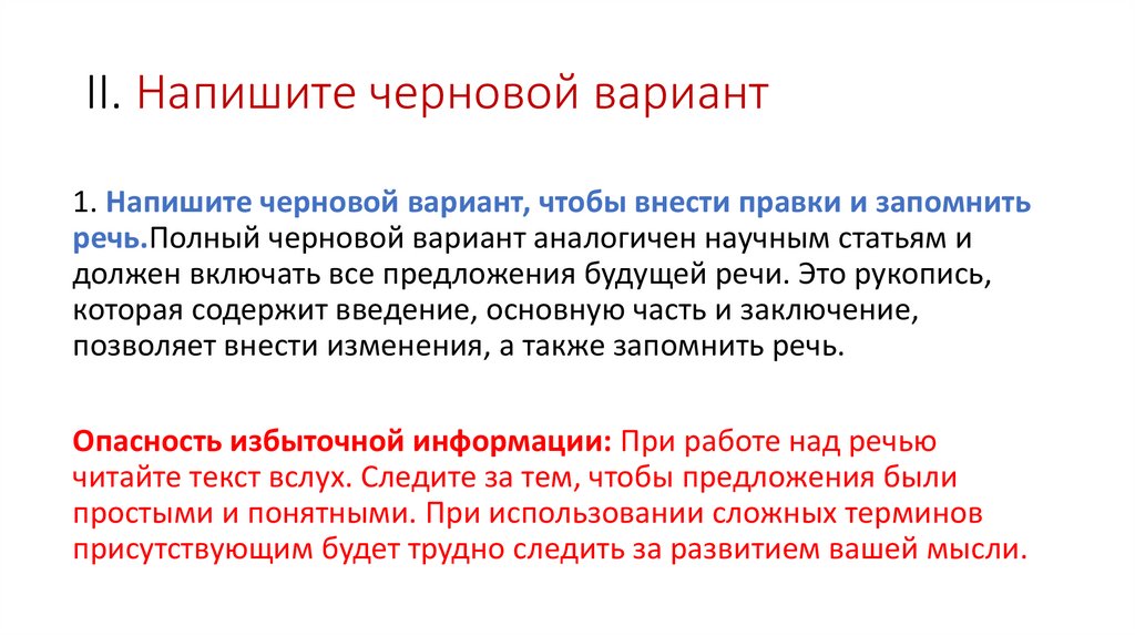 II. Напишите черновой вариант1. Напишите черновой вариант, чтобы внести правки и запомнить