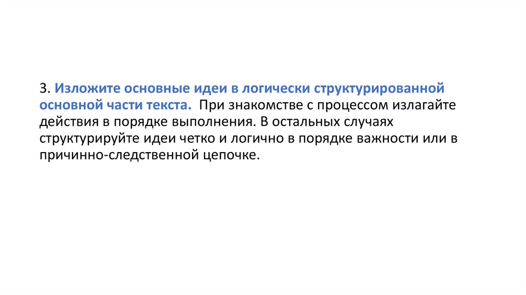 3. Изложите основные идеи в логически структурированнойосновной части текста. При знакомстве с процессом излагайте