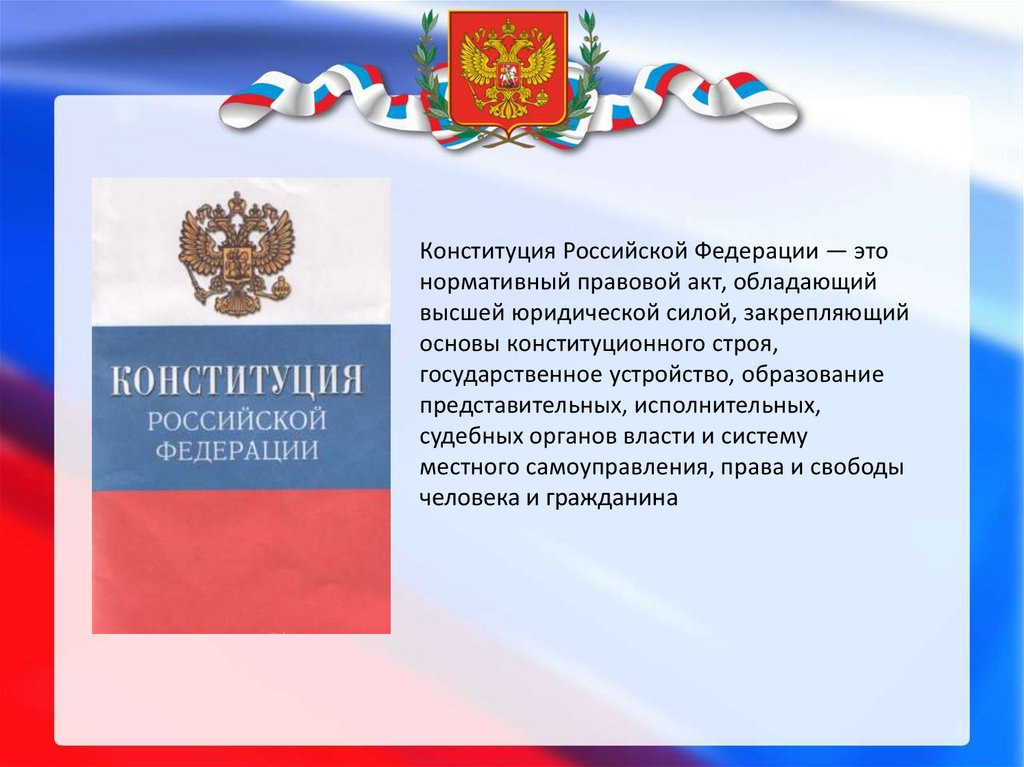 Конституция Российской Федерации — этонормативный правовой акт, обладающий