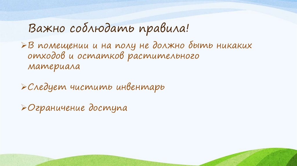 Важно соблюдать правила!В помещении и на полу не должно быть никаких