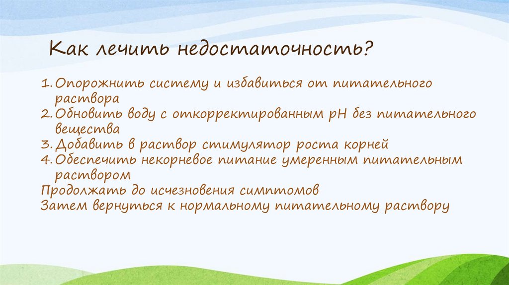 Как лечить недостаточность?1. Опорожнить систему и избавиться от питательного