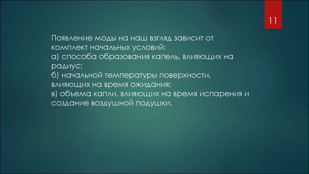3) спонтанные колебания капли из-за неоднородной