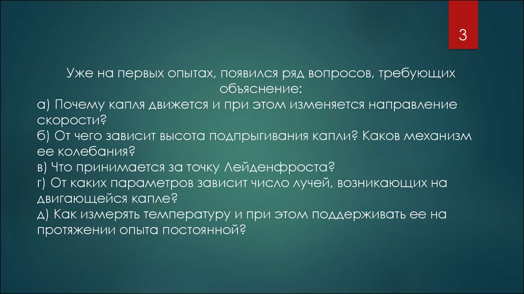 3Уже на первых опытах, появился ряд вопросов, требующих