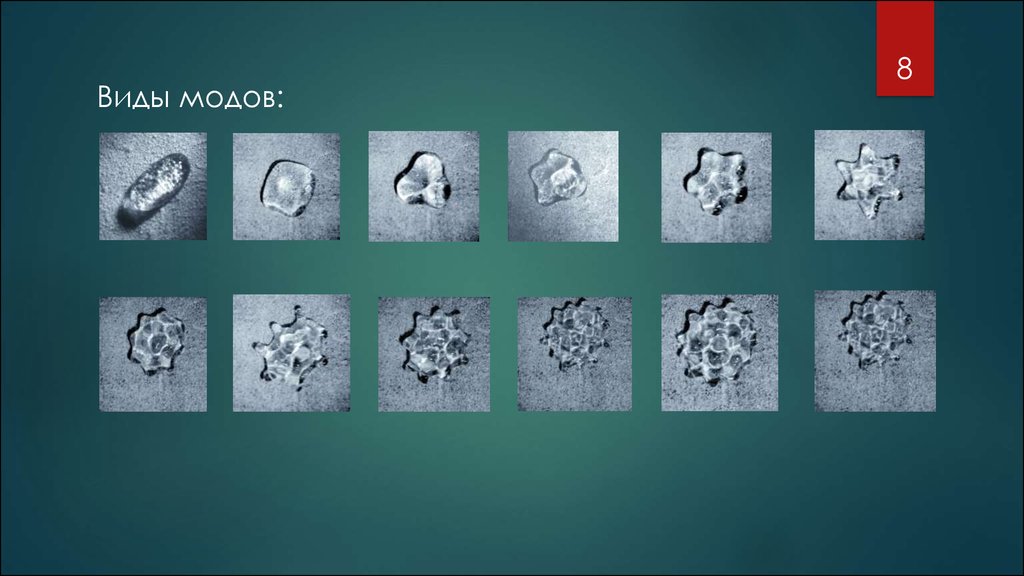 различные колебательные моды капли.