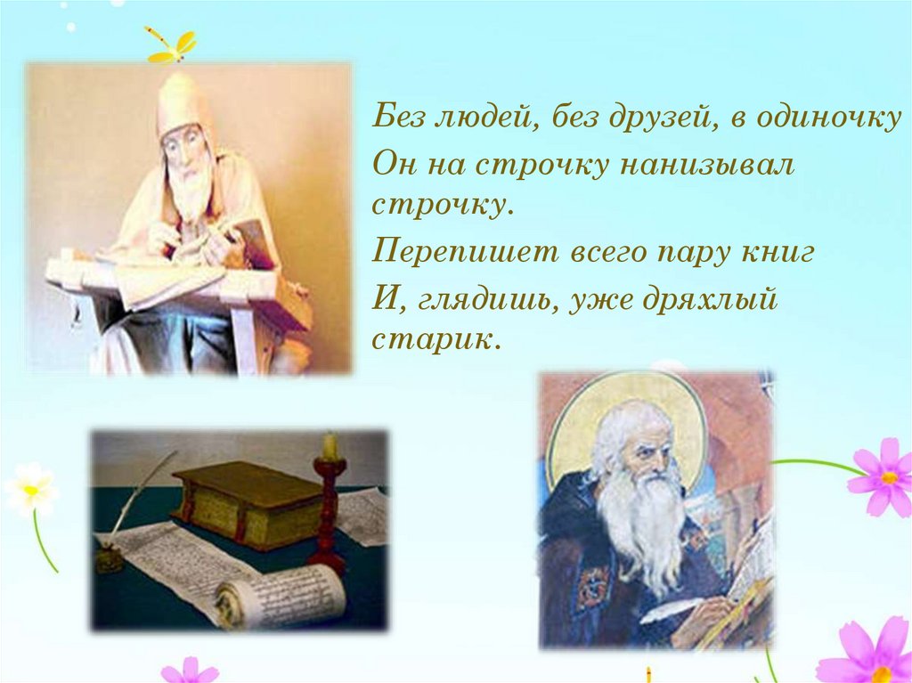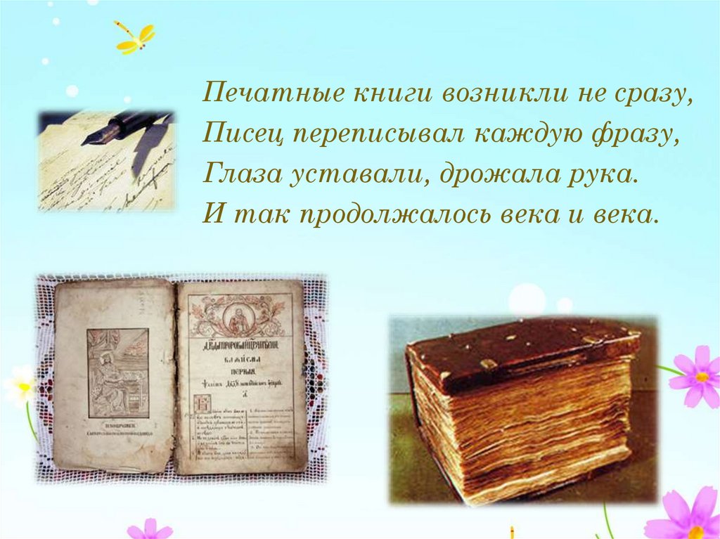 Печатные книги возникли не сразу,Писец переписывал каждую фразу,