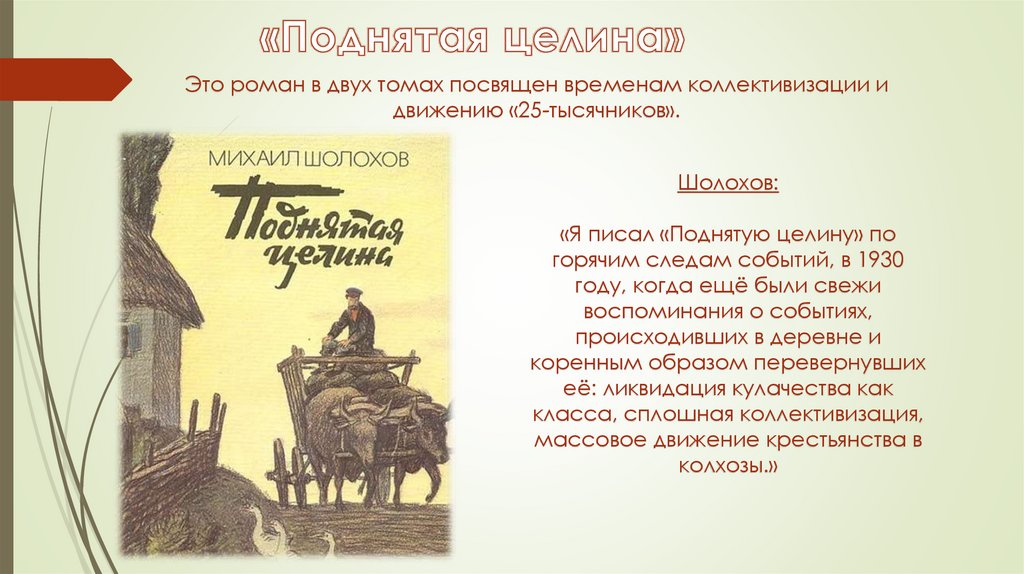 «Я писал «Поднятую целину» по