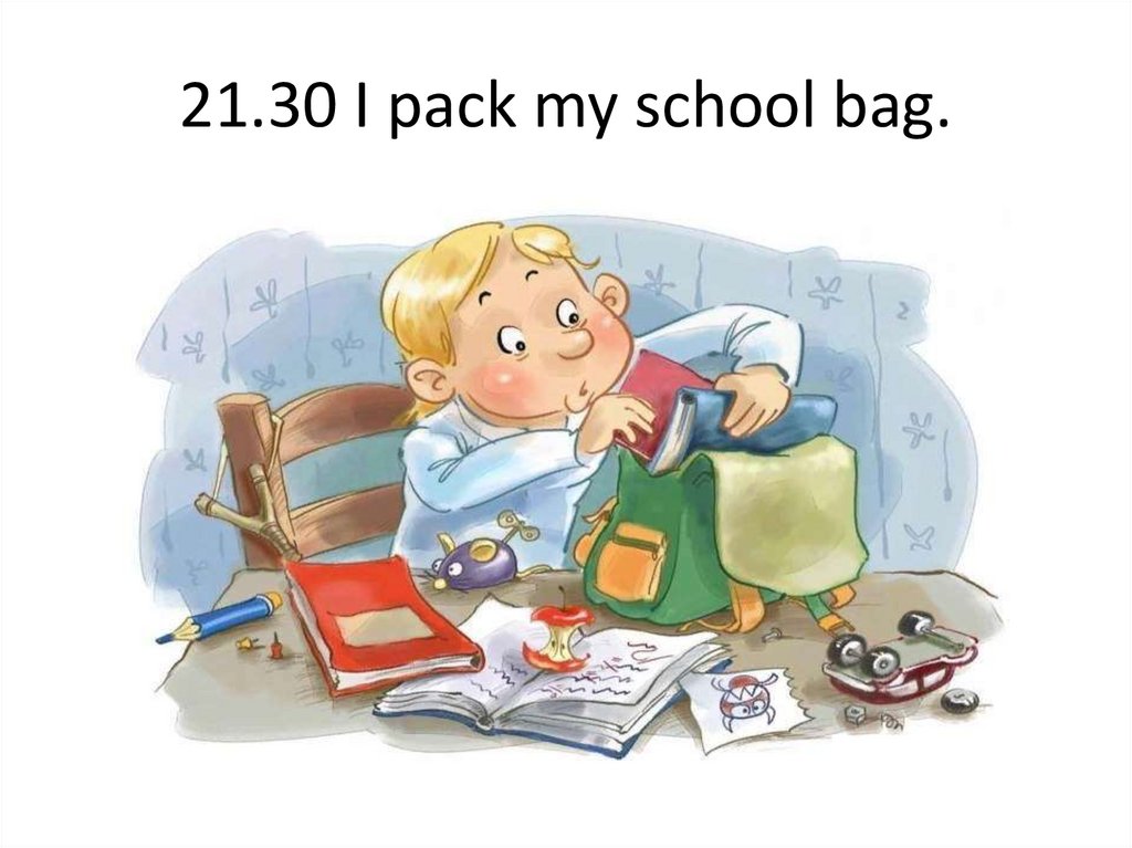21.30 I pack my school bag.