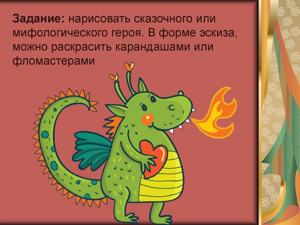Задание: нарисовать сказочного илимифологического героя. В форме эскиза,