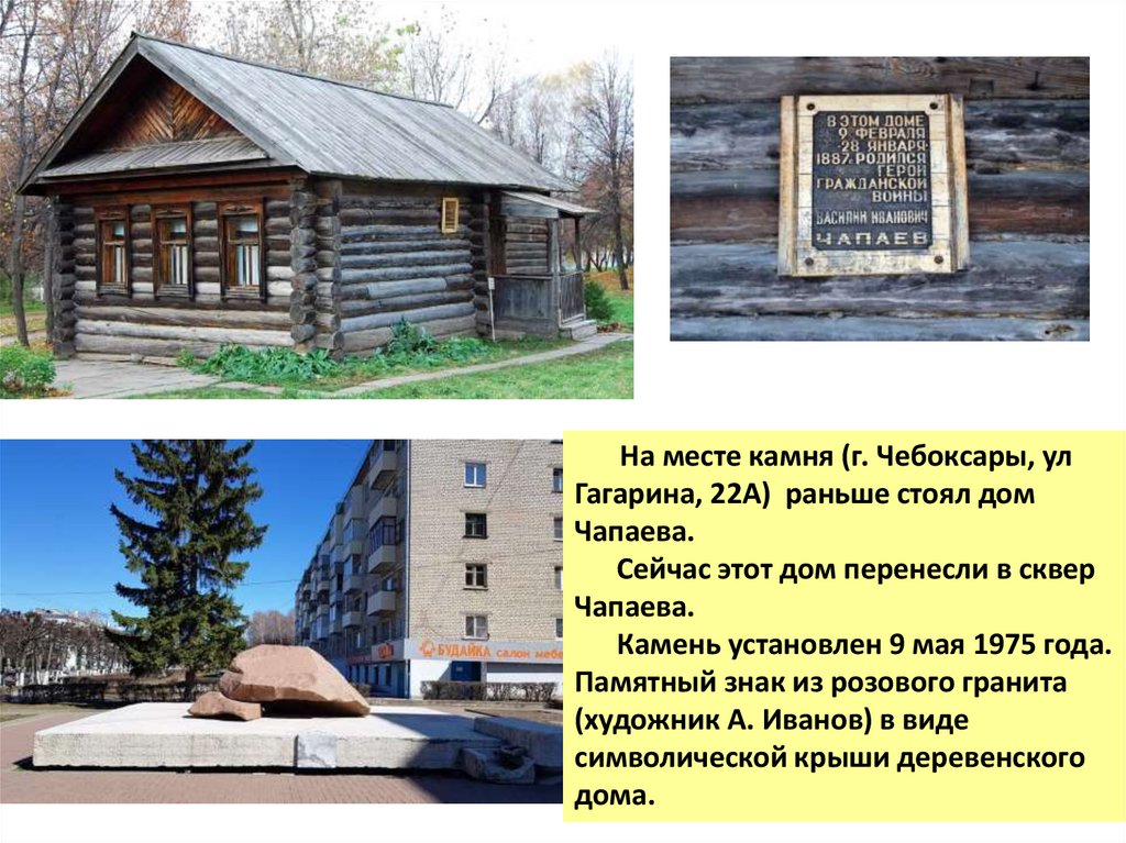 На месте камня (г. Чебоксары, улГагарина, 22А) раньше стоял дом