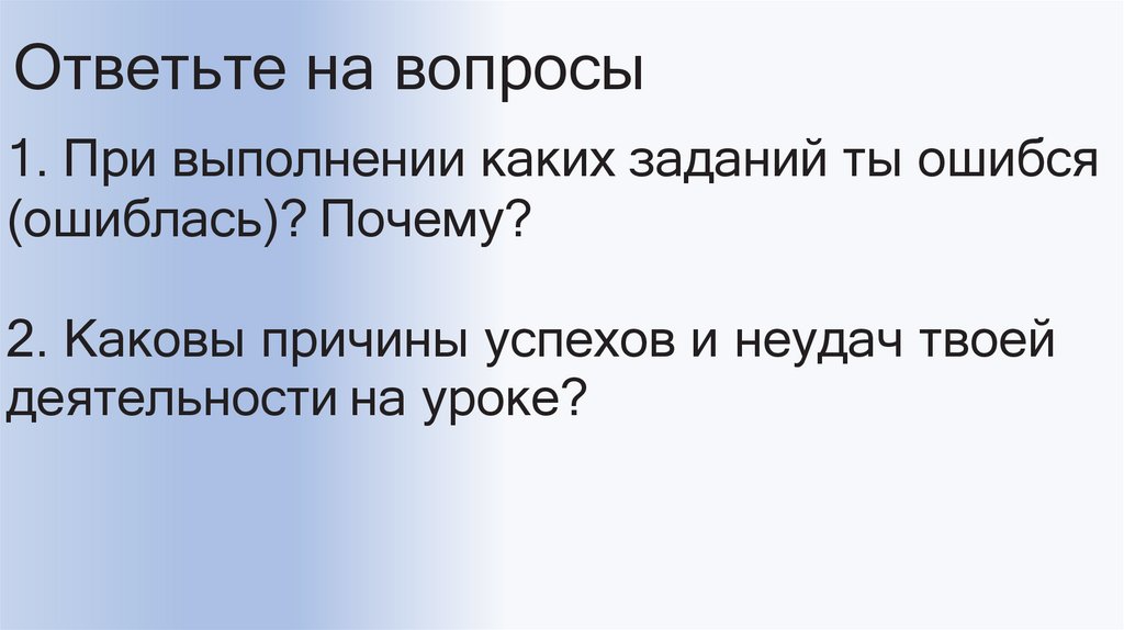 Ответьте на вопросы1. При выполнении каких заданий ты ошибся