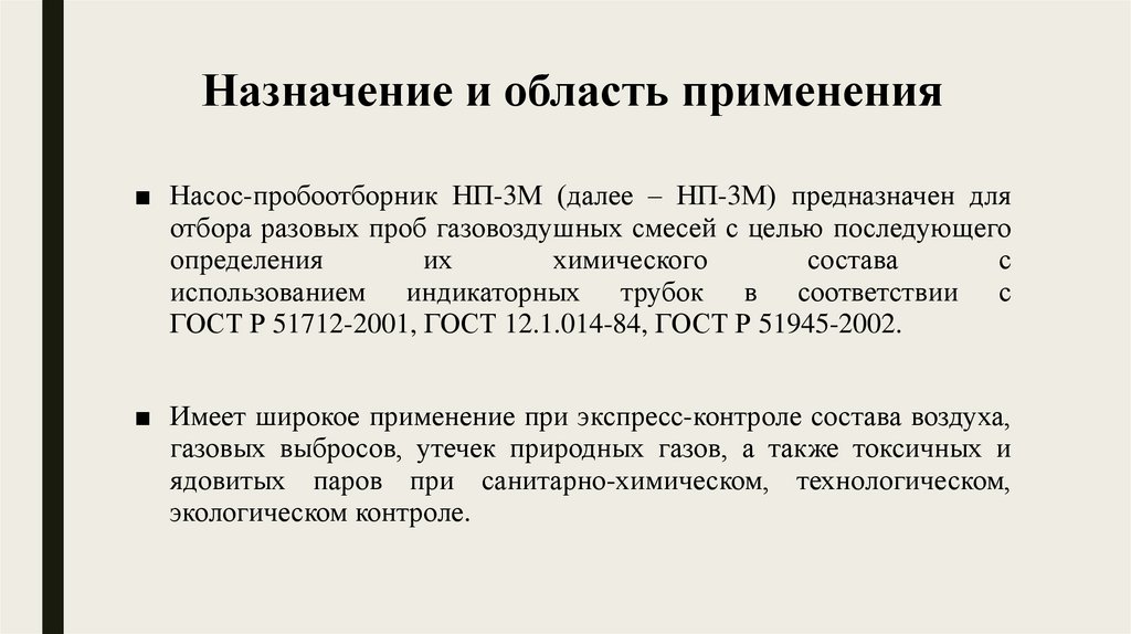 Назначение и область применения■ Насос-пробоотборник НП-3М (далее – НП-3М) предназначен для