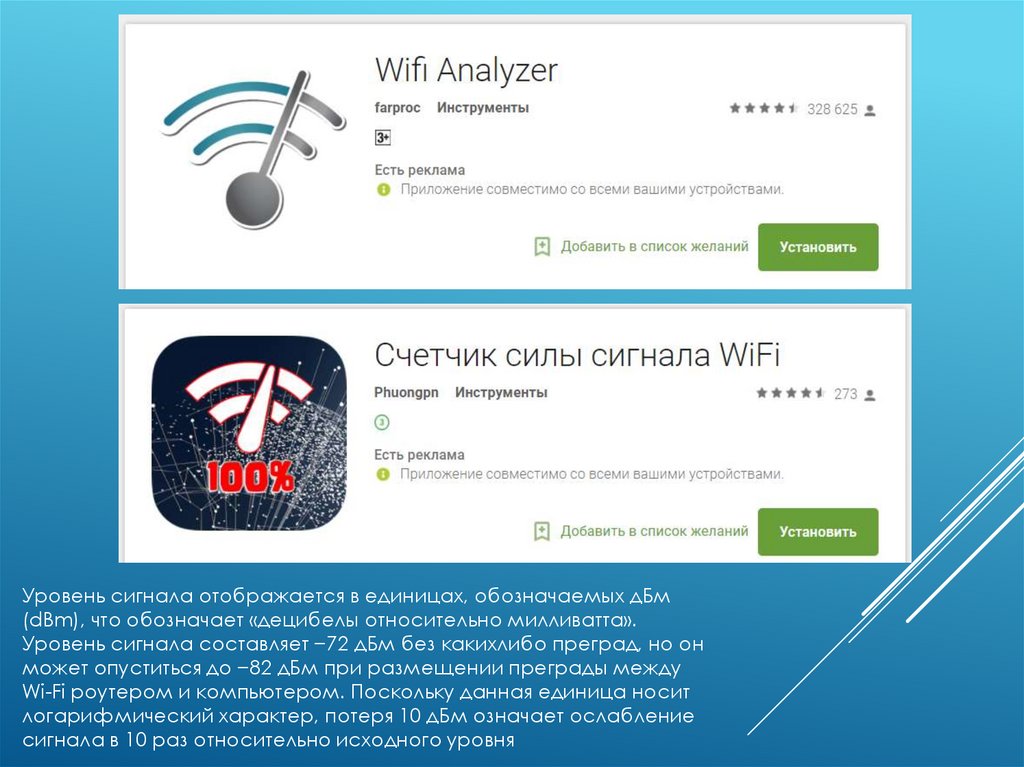 Уровень сигнала отображается в единицах, обозначаемых дБм(dBm), что обозначает «децибелы относительно милливатта».