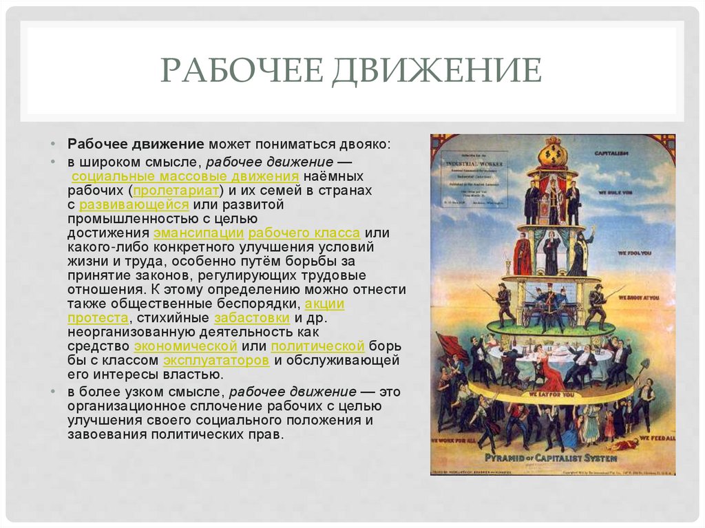 • в широком смысле, рабочее движение —