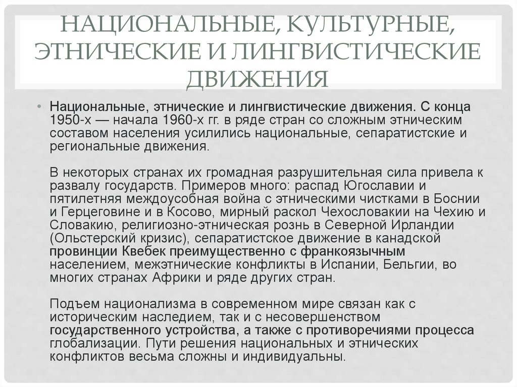 • Национальные, этнические и лингвистические движения. С конца