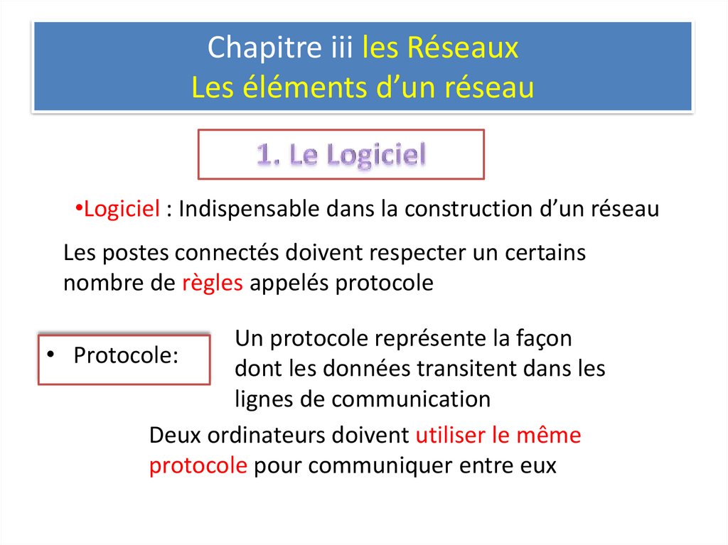 Chapitre iii les RéseauxLes éléments d’un réseau
