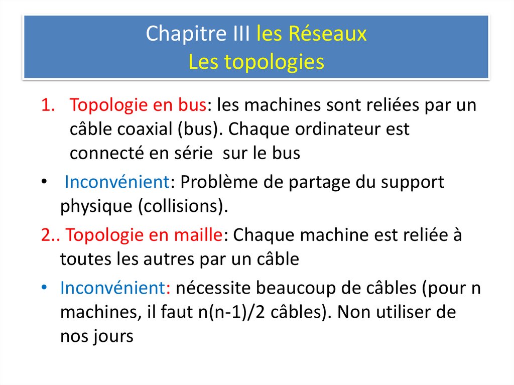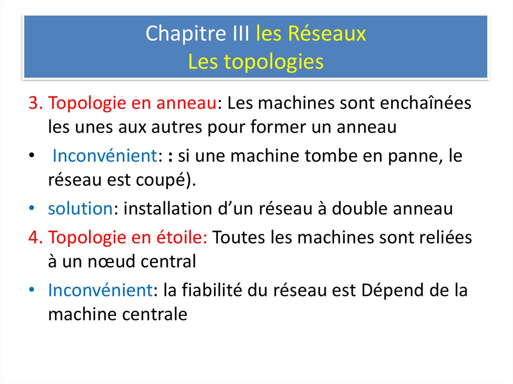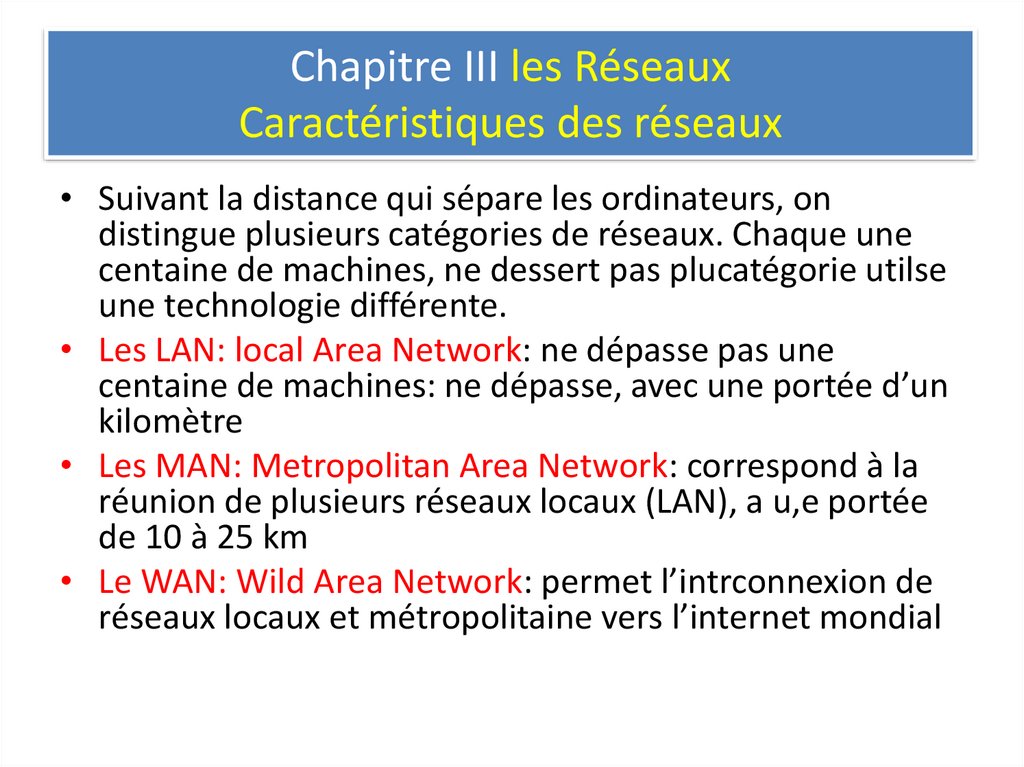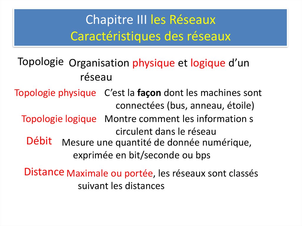 Chapitre III les RéseauxCaractéristiques des réseaux