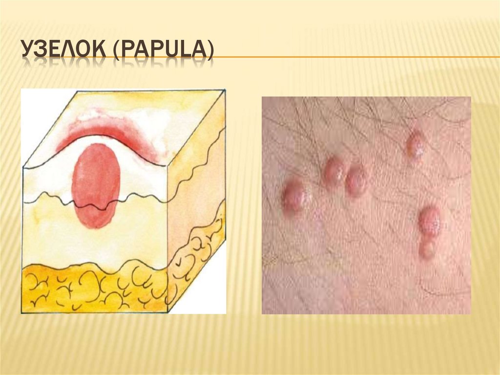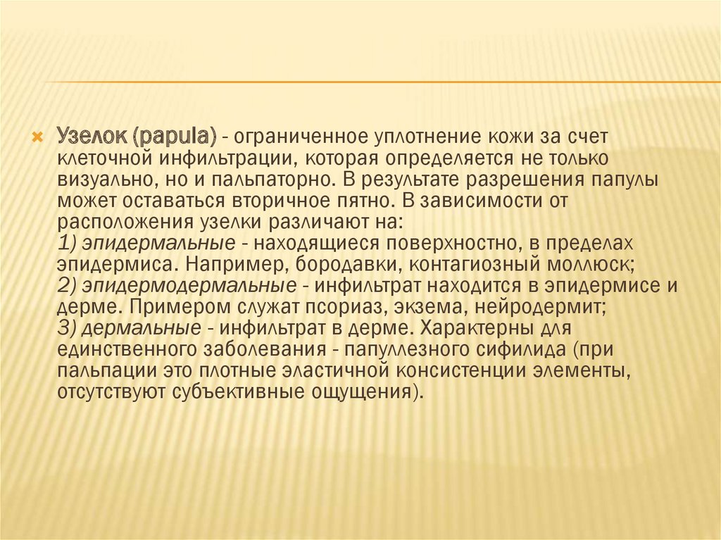 Узелок (papula) - ограниченное уплотнение кожи за счетклеточной инфильтрации, которая определяется не только
